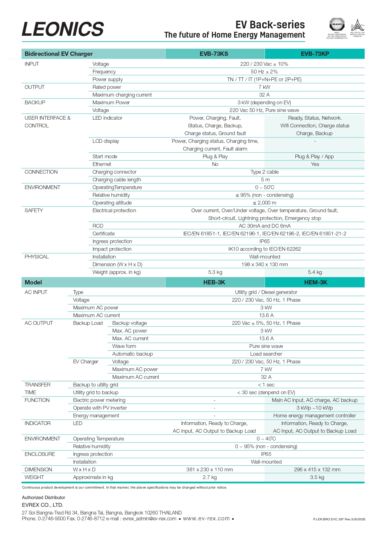 คุณสมบัติเครื่องชาร์จรถยนต์ไฟฟ้า EV Back รุ่น EVB-73KS